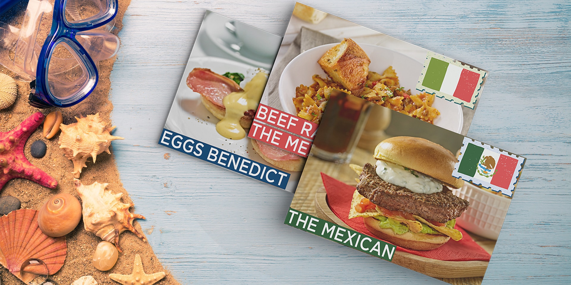 The idea is to take your customers on a journey from the minute they come to your eatery to the minute they leave. It’s all about the small touches and attention to detail that make a difference. We supply a lot of the ingredients needed to put these menus together, just choose your country and get creative!