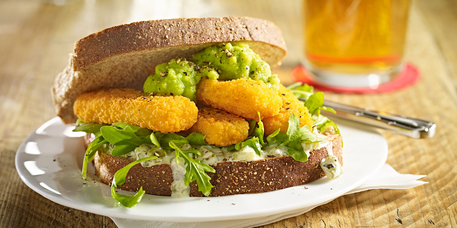 The Ultimate fish finger sandwich– Fresh sour dough, good butter, tartar sauce and pea salsa.